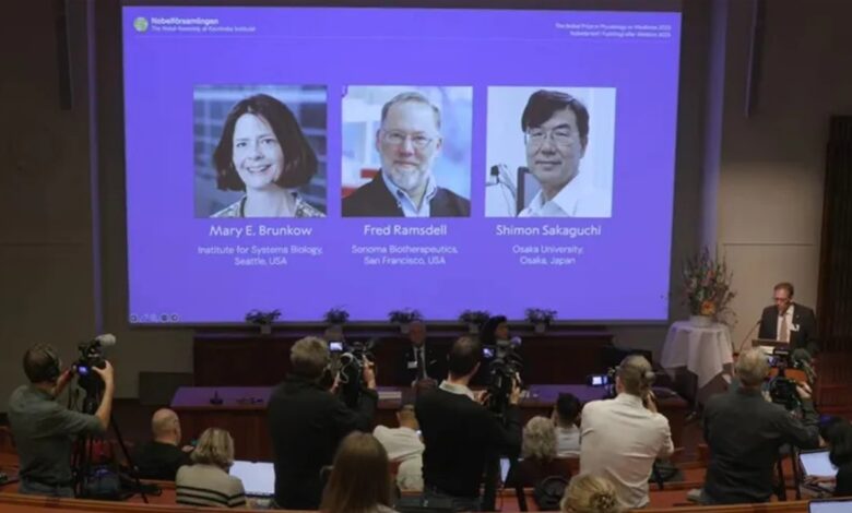 أعلنت جمعية نوبل بمعهد كارولينسكا للعلوم في السويد، الاثنين، منح جائزة نوبل في الطب لعام 2025 إلى ماري إي. برونكو، وفريد رامسديل، وشيمون ساكاجوتشي.