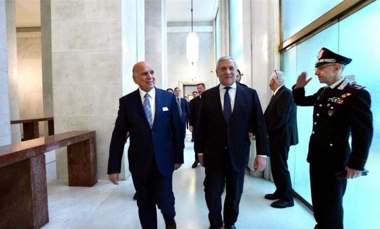 وتابع، انه “في سياق تعزيز التعاون الثنائي، طلب فؤاد حسين من الجانب الإيطالي إعادة النظر في القيود المفروضة على السفر إلى العراق، في ضوء التحسّن الملحوظ في الوضع الأمني وحالة الاستقرار التي يشهدها البلد، حيث أبدى الوزير الإيطالي تفهّمَه لهذا الطلب ووعد بالعمل على الاستجابة له”.