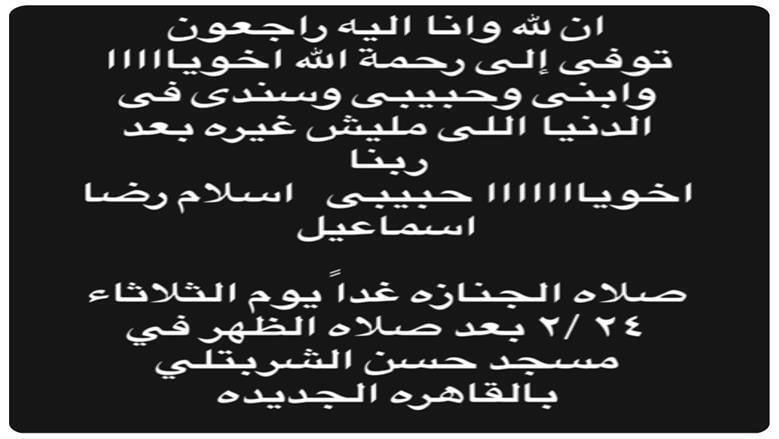 كما أعلن شقيقها حمادة رضا الخبر ذاته عبر منصاته الاجتماعية.