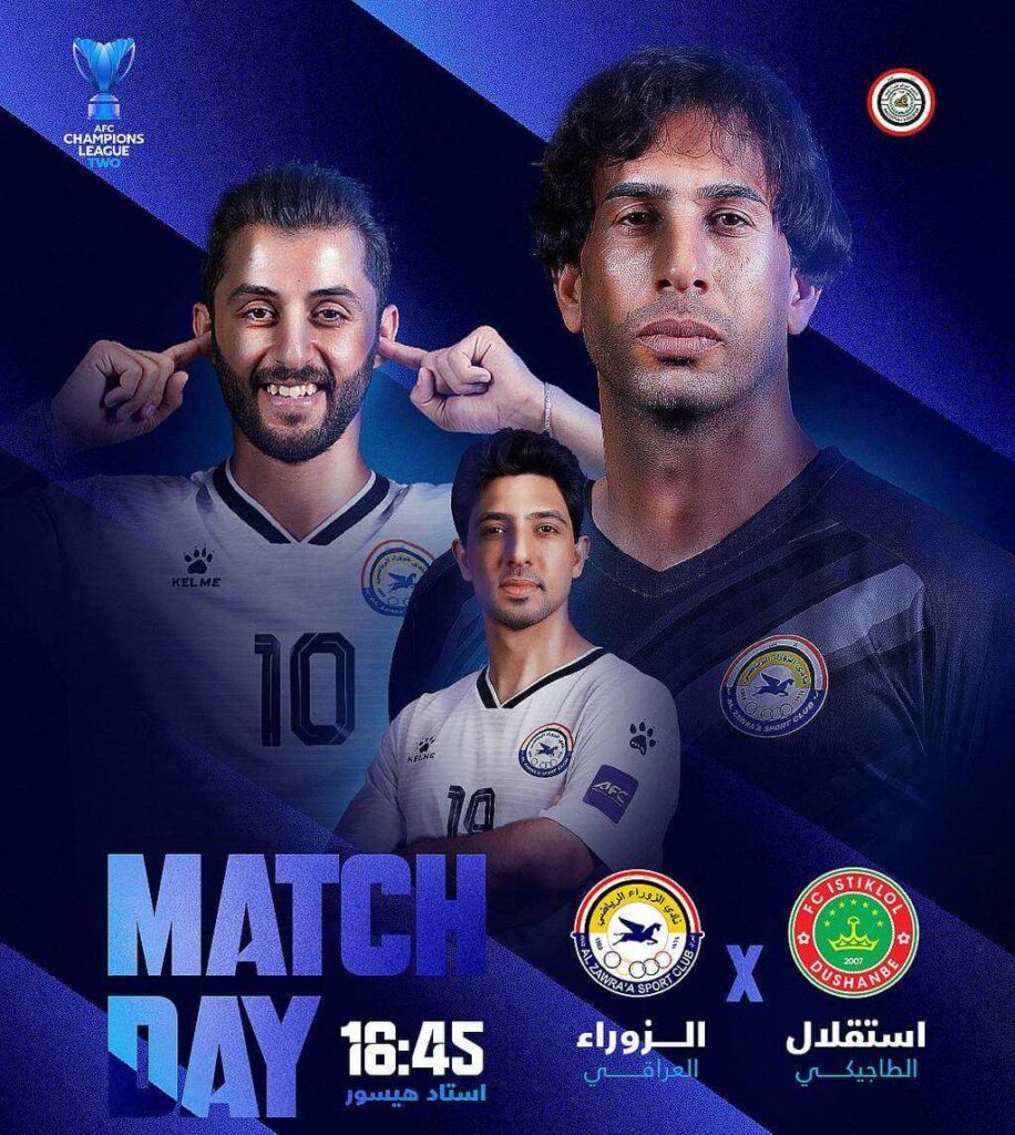يواجه نادي الزوراء، اليوم الأربعاء، مضيفه نادي استقلال دوشنبه الطاجيكستاني ضمن منافسات الجولة الثانية من المجموعة الرابعة من دوري أبطال آسيا 2 لكرة القدم.