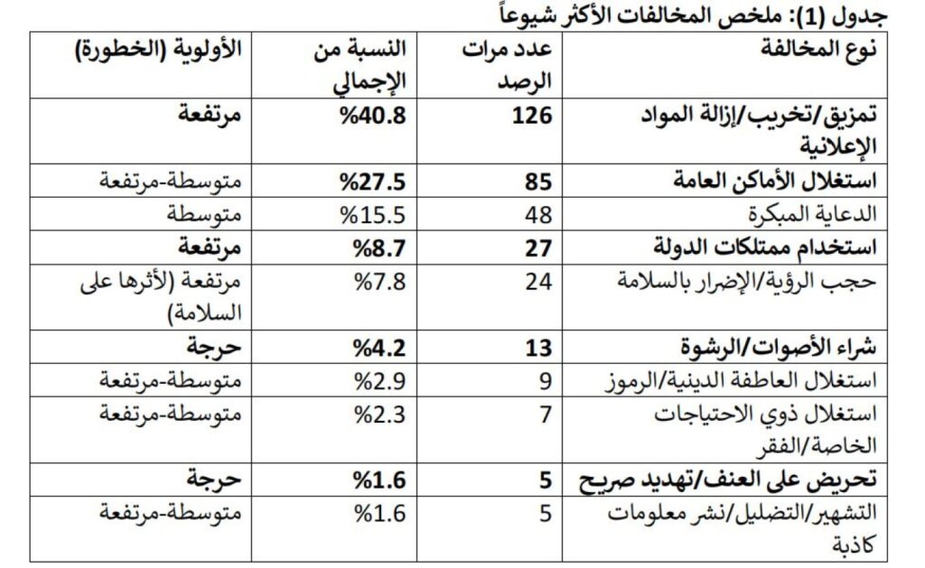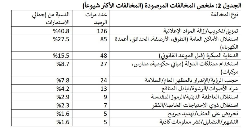 انتخابات 2025: تقرير مفصل عن مخالفات الحملات الانتخابية وخطاب الكراهية (جداول)