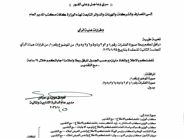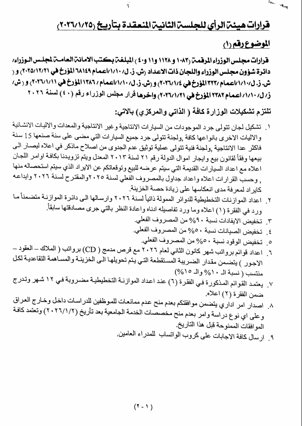 ووفقاً لوثائق صادرة عن الوزارة واطلعت عليها روافدنيوز، ان “القرارات شملت تقليص حصص الوقود المخصصة للسيارات الحكومية بنسبة 50%، في إطار سياسة ترشيد الإنفاق وتقليل الهدر في الموارد العامة”.