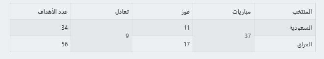 كما حسم التعادل مواجهات المنتخبين في 9 مناسبات، فيما سجل أسود الرافدين 56 هدفًا في شباك السعودية مقابل 34 هدفًا لصالح الصقور الخضراء.