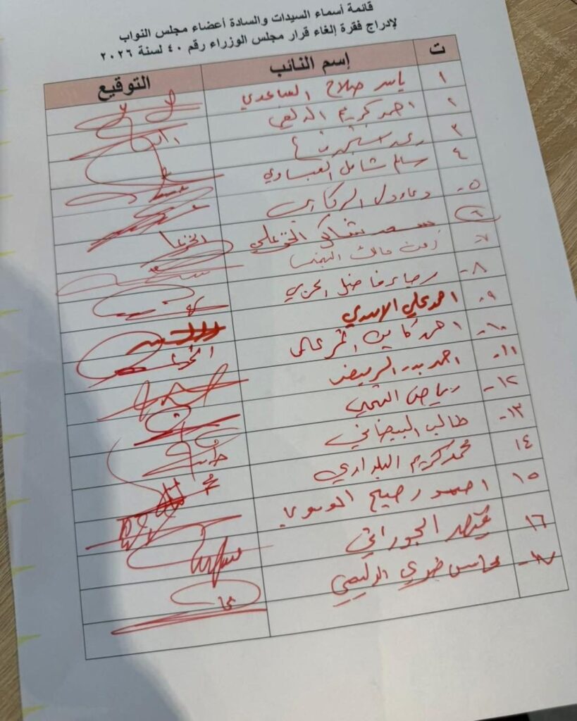 كشفت وثائق رسمية حصلت عليها “السومرية نيوز”، عن إطلاق النائب وفاء الطائي حراكاً برلمانياً مدعوماً بتواقيع نيابية، للمطالبة بإلغاء قرار مجلس الوزراء رقم (40) لسنة 2026، والمتضمن إلغاء المخصصات الجامعية.
