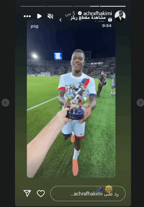أثار النجم المغربي أشرف حكيمي جدلا واسعا على مواقع التواصل الاجتماعي، بعدما نشر صورة لزميله في باريس سان جيرمان نونو مينديز مرفقة برموز تعبيرية تدل على الدهشة.