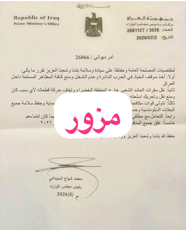 وقال رئيس الخلية الفريق سعد معن في بيان صحافي، “ننفي صحة الوثيقة المتداولة في بعض مواقع التواصل الاجتماعي والمنسوبة إلى مكتب رئيس مجلس الوزراء، ونؤكد أنها وثيقة مزوّرة ولا أساس لها من الصحة”.