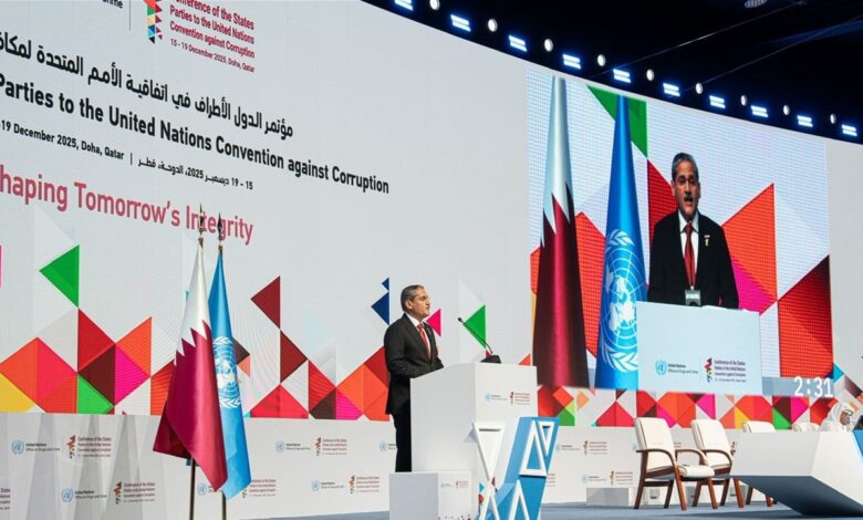انطلقت أعمال الدورة الحادية عشرة لمؤتمر الدول الأطراف في اتفاقية الأمم المُتَّـحدة بالعاصمة القطريَّـة الدوحة، اليوم الثلاثاء، بمشاركة وفد عراقي برئاسة رئيس هيئة النزاهة الاتحادية محمد علي اللامي الذي دعا الدول الأطراف للتعاون الفاعل في استرداد الأموال والأصول.