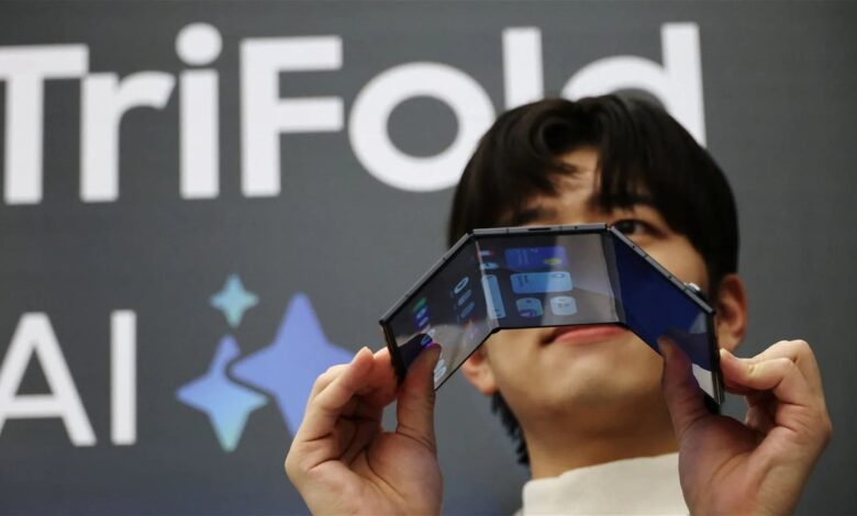 أطلقت شركة “سامسونغ” للإلكترونيات، اليوم الجمعة، هاتف “غالاكسي زد تراي فولد” الثلاثي الطي، وهو الطراز القابل للطي الجديد للشركة، في كوريا الجنوبية؛ مما أدى إلى اصطفاف طوابير طويلة في متاجر البيع بالتجزئة التابعة للشركة في أنحاء البلاد.