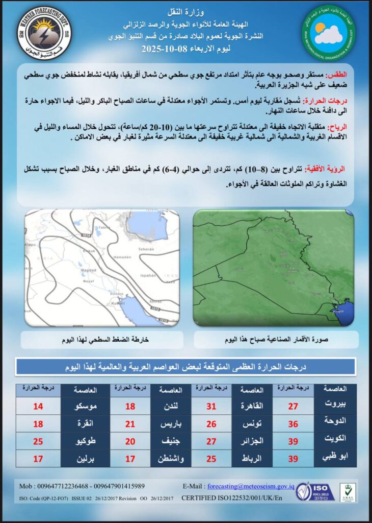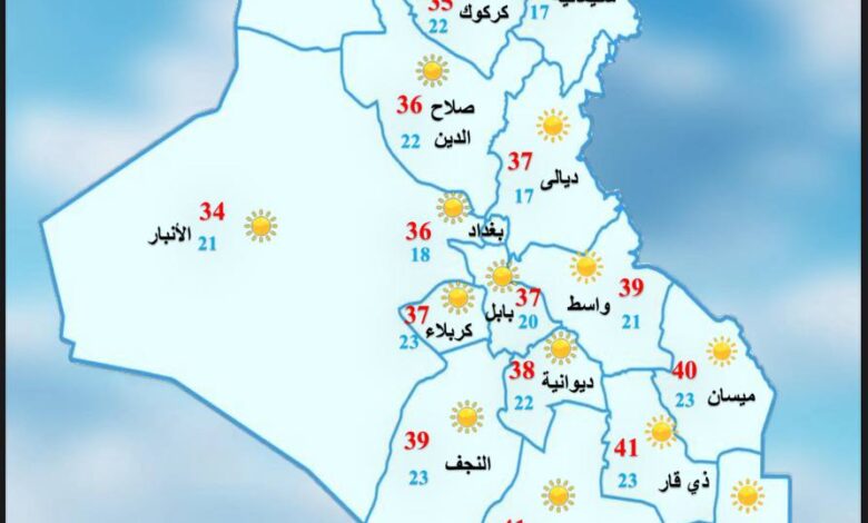 طقس العراق.. غبار وتباين بدرجات الحرارة خلال 4 أيام مقبلة