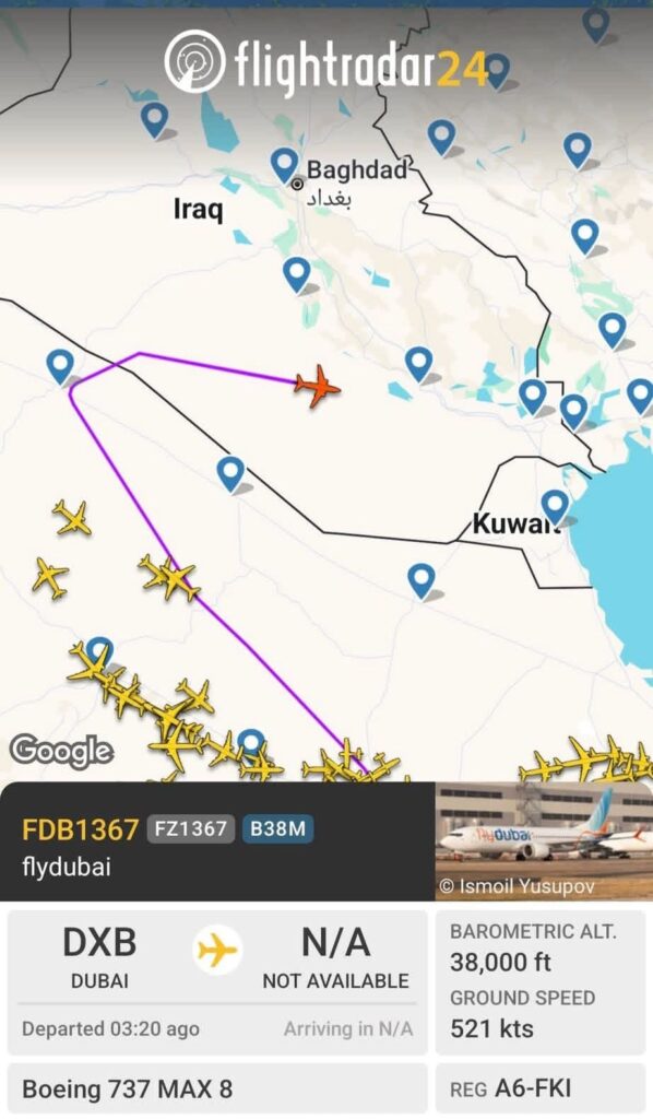 “فلاي دبي” أول طائرة تعبر الأجواء العراقية بعد انقطاع دام 40 يوما