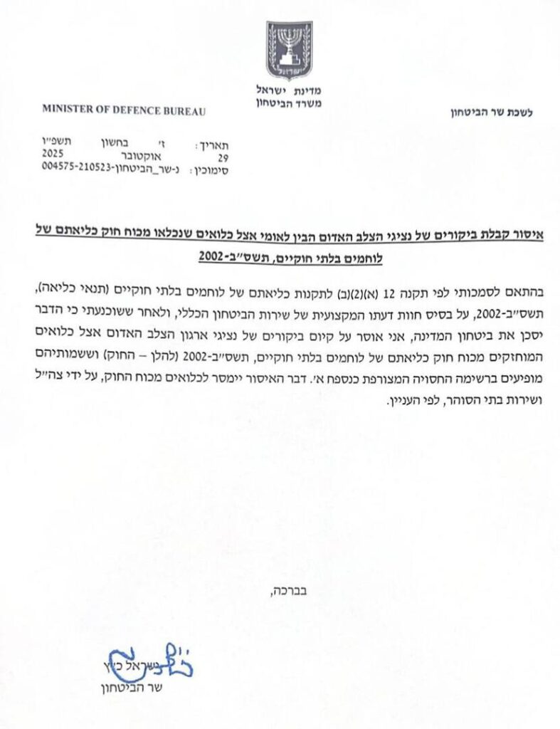 وأضاف الوزير أن هذه المعطيات دفعته إلى اتخاذ قرار بوقف الزيارات حتى إشعار آخر، مؤكدا أن القرار يهدف إلى “حماية أمن إسرائيل ومنع أي نشاط يمكن أن يُستغل للإضرار بها”.