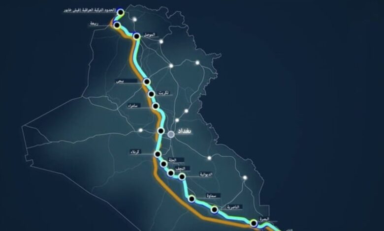 و”طريق التنمية” طريق بري وسكة حديدية تمتد من العراق إلى تركيا وموانئها، يبلغ طوله 1200 كيلومتر داخل العراق، ويهدف إلى نقل البضائع بين أوروبا ودول الخليج.
