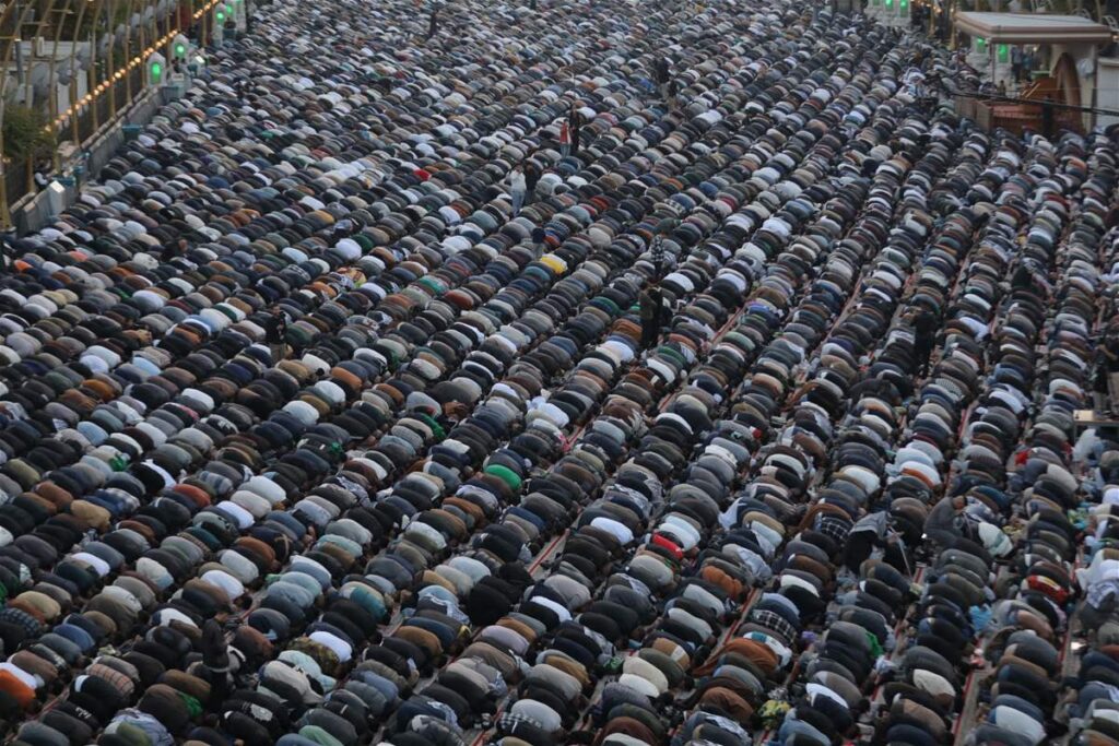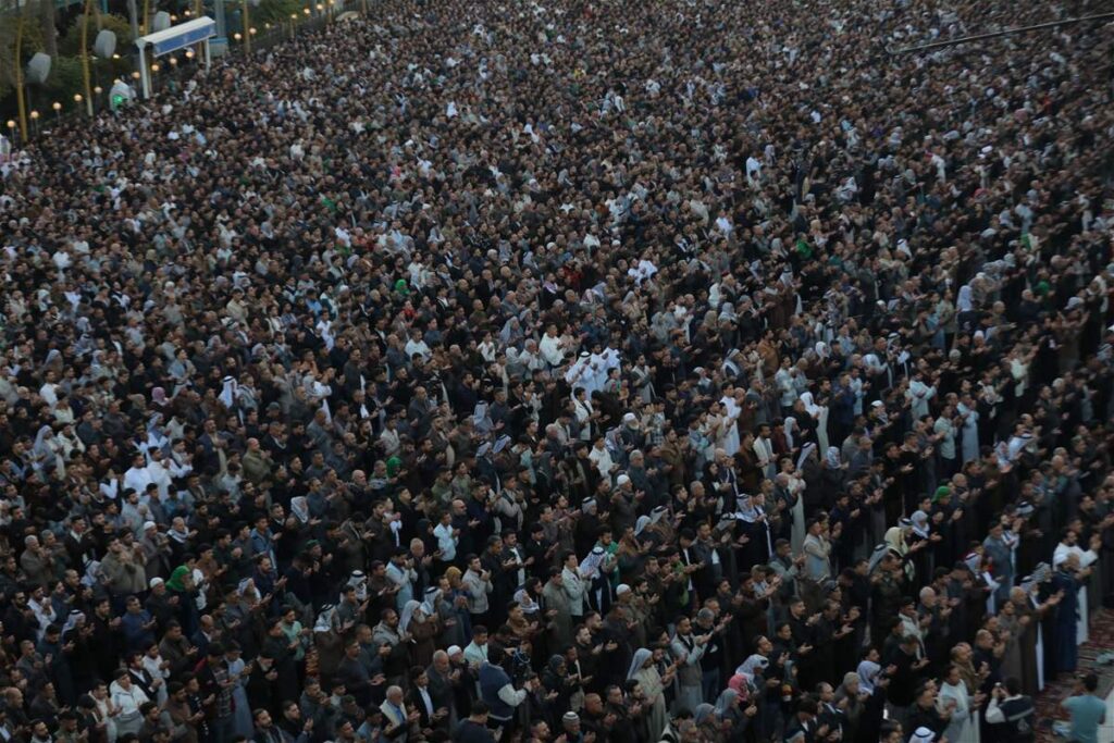 وأظهرت الصور والمشاهد الحية اكتظاظ الساحة الواصلة بين المرقدين الطاهرين بصفوف المصلين الذين امتدت صفوفهم إلى الشوارع المؤدية للمدينة القديمة، حيث صدحت الحناجر بالتكبير والتحميد في أجواء سادتها الروحانية والطمأنينة.