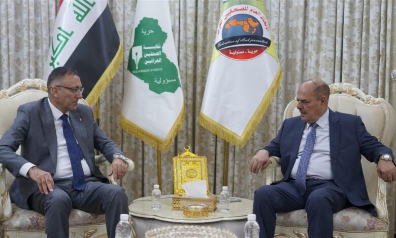 من جانبه، عبر سفير دولة فلسطين عن اعتزازه بدور نقابة الصحفيين والأسرة الصحفية العراقية البارز والمؤثر من أجل القضية الفلسطينية وتعزيز دورها على مستوى الإعلام العربي، بحسب البيان./انتهى