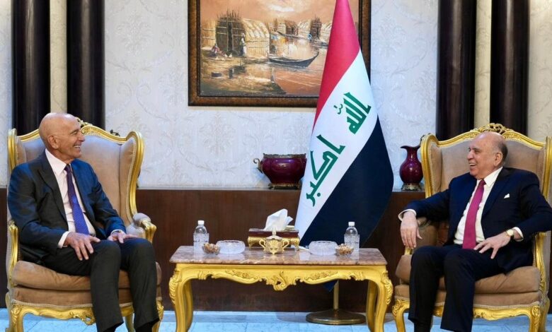 وذكر بيان لوزارة الخارجية، أن “وزير الخارجية، استقبل مبعوث الرئيس الأمريكي توماس باراك، والوفد المرافق له، في بغداد”، مبينا انه “جرى خلال اللقاء استعراض العلاقات الثنائية المتطورة بين العراق والولايات المتحدة، والتأكيد على أهمية مواصلة التنسيق والتعاون المشترك في مختلف المراحل، لا سيما في مجال مكافحة الإرهاب”.