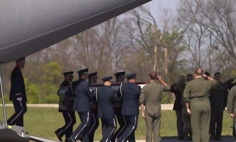 وصل جثمان جندية من ولاية كنتاكي الأمريكية لقيت حتفها إثر تحطم طائرة تزود بالوقود من طراز KC-135 فوق العراق إلى مسقط رأسها لتشييعها.